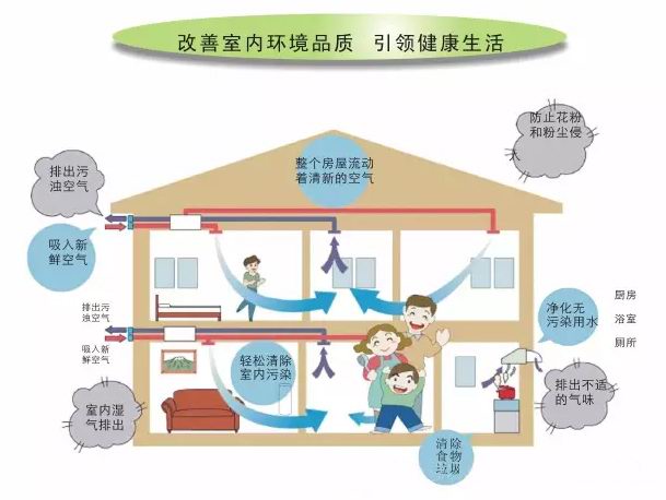 室內(nèi)新風(fēng)系統(tǒng):可以將裝修造成的各種有害氣體和室內(nèi)污濁空氣排出室外,并將室外的新鮮空氣經(jīng)過高效凈化后送入室內(nèi),24小時不間斷進(jìn)行置換,時刻保持室內(nèi)空氣新鮮,讓新裝修的房間再無難聞氣味,獲得良好的精神狀態(tài),保證充足睡眠,增強(qiáng)機(jī)體免疫力。