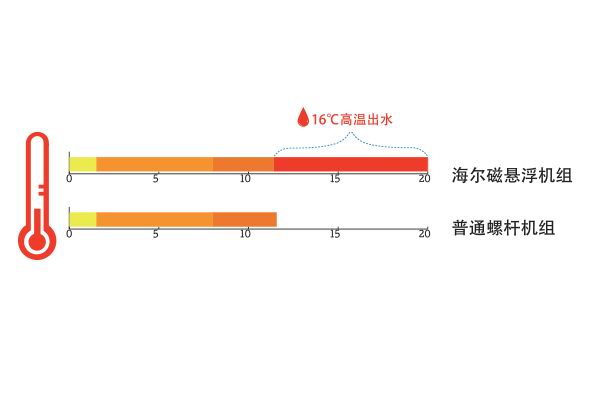 磁懸浮機(jī)組不使用任何潤(rùn)滑油,所以不需要回油壓差,可以做高溫出水16℃(最高到20℃)機(jī)組,而普通螺桿機(jī)組由于需要建立回油壓差,故難以實(shí)現(xiàn)高溫出水機(jī)組。