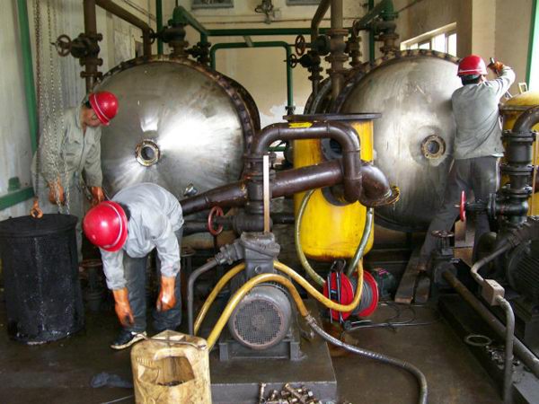 | 理冷卻塔清洗-水處理及維修保養(yǎng) 由于冷卻系統(tǒng)是開放式系統(tǒng),長期與空氣接觸,容易產(chǎn)生灰塵。而且系統(tǒng)水溫在32~37攝氏度之間,較易形成水垢且適合藻類生長,所以,冷卻塔需定期進(jìn)行清洗。 機(jī)械通風(fēng)式冷卻塔主要由塔體、填料、布水器、通風(fēng)設(shè)備、集水池等構(gòu)成。 1、冷卻水系統(tǒng)清洗(包括冷卻塔、管道等) 2、冷卻塔的物理清洗及殺菌滅藻(填料清洗、更換) 3、整個(gè)系統(tǒng)的殺菌滅藻處理和全有機(jī)化學(xué)清洗。 4、整個(gè)系統(tǒng)的預(yù)膜緩蝕處理和日常水質(zhì)維護(hù) | 鍋爐清洗-水處理、蒸汽鍋爐化學(xué)清洗 為使鍋爐系統(tǒng)在最優(yōu)狀態(tài)下運(yùn)行,就必須對(duì)鍋爐系統(tǒng)的水系統(tǒng)進(jìn)行專門的化學(xué)藥物處理:清除水垢、銹蝕和防腐蝕處理 1、化學(xué)清洗:鍋爐的清洗是對(duì)鍋爐對(duì)流管、過熱器管、空氣熱器、水冷壁管水垢、鐵銹進(jìn)行清洗,加入化學(xué)清洗劑將系統(tǒng)內(nèi)的浮銹、垢、油污清洗分散排出,還原成清潔的金屬表面,根據(jù)不同的工作條件有停爐清洗和不停爐清洗兩種方式 2、日常保養(yǎng):日常保養(yǎng)是對(duì)鍋爐水進(jìn)行水質(zhì)處理,采用自動(dòng)加藥系統(tǒng)加入GR-943C鍋爐阻垢靈、GR-201克垢丹,避免金屬生銹,防止鈣鎂離子結(jié)晶沉淀。 |